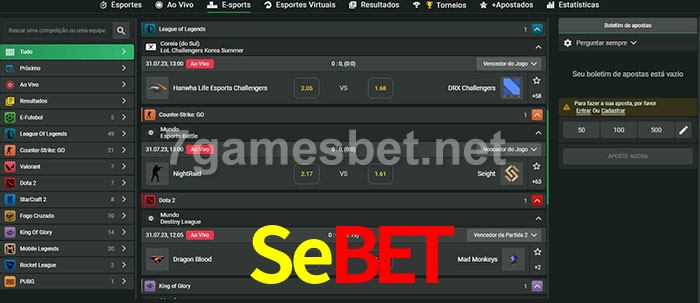 O Sebet oferece uma grande seleção de opções de apostas em e-sports com probabilidades competitivas